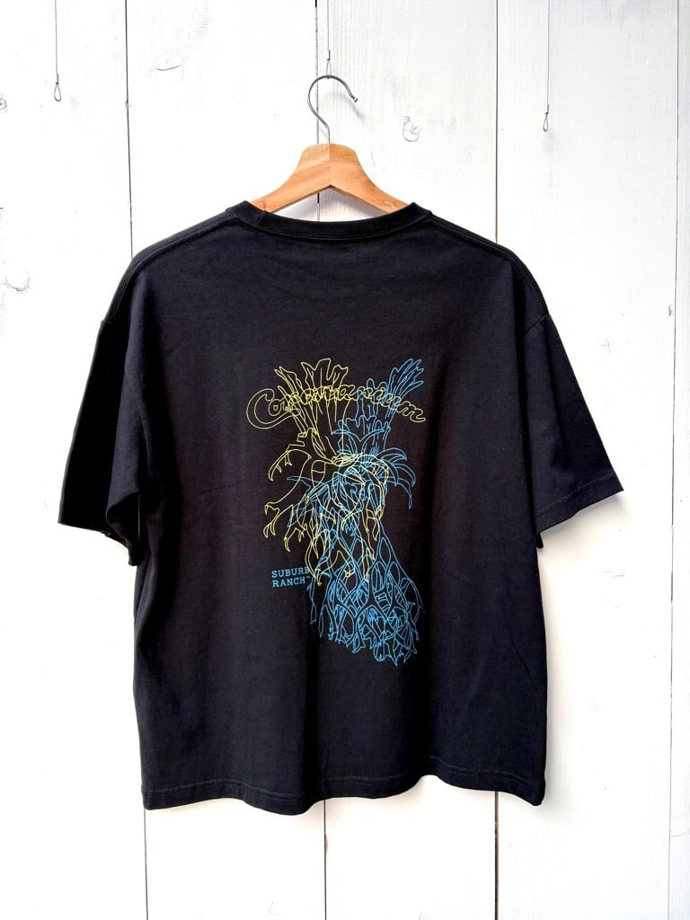 ピンストライプ ”コロナリウムなTシャツ” ブラック ビックシルエット T-shirt ビカクシダ サバーブランチ SUBURB RANCH