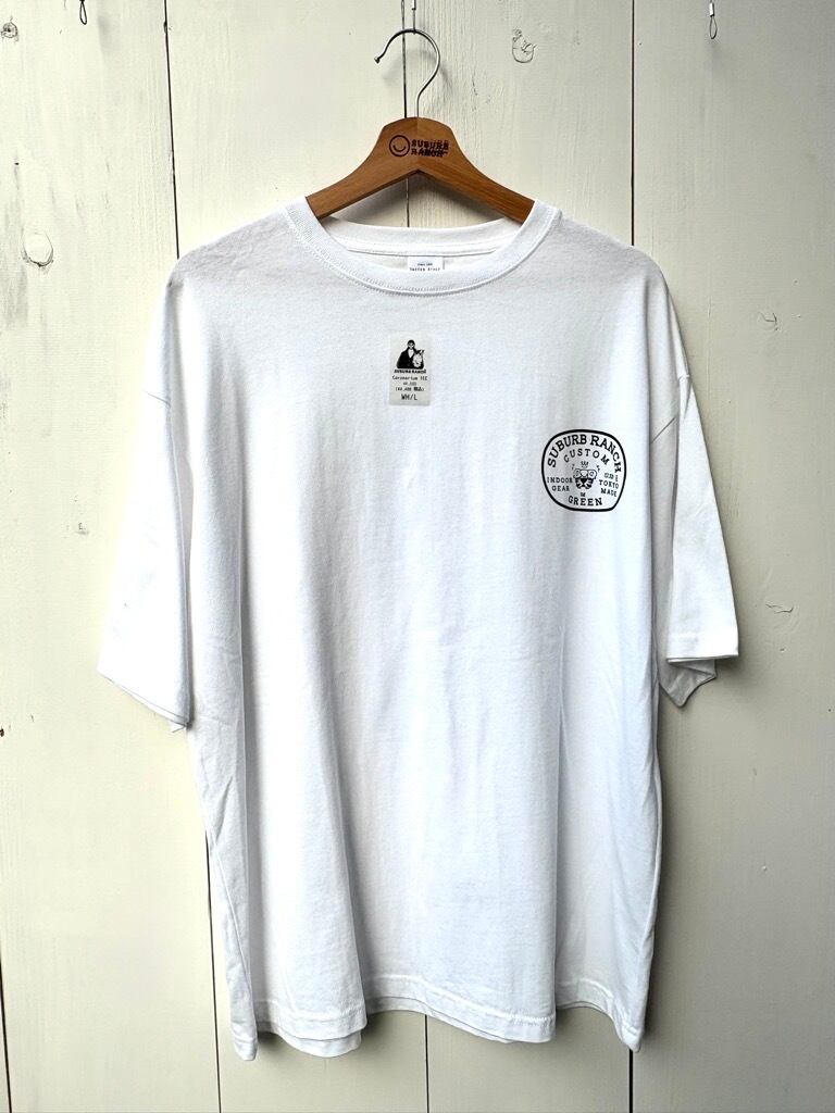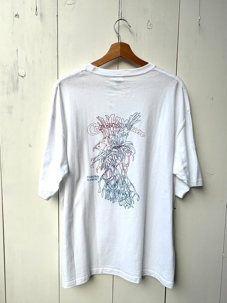 ピンストライプ ”コロナリウムなTシャツ” ホワイト ビックシルエット T-shirt ビカクシダ サバーブランチ SUBURB RANCH