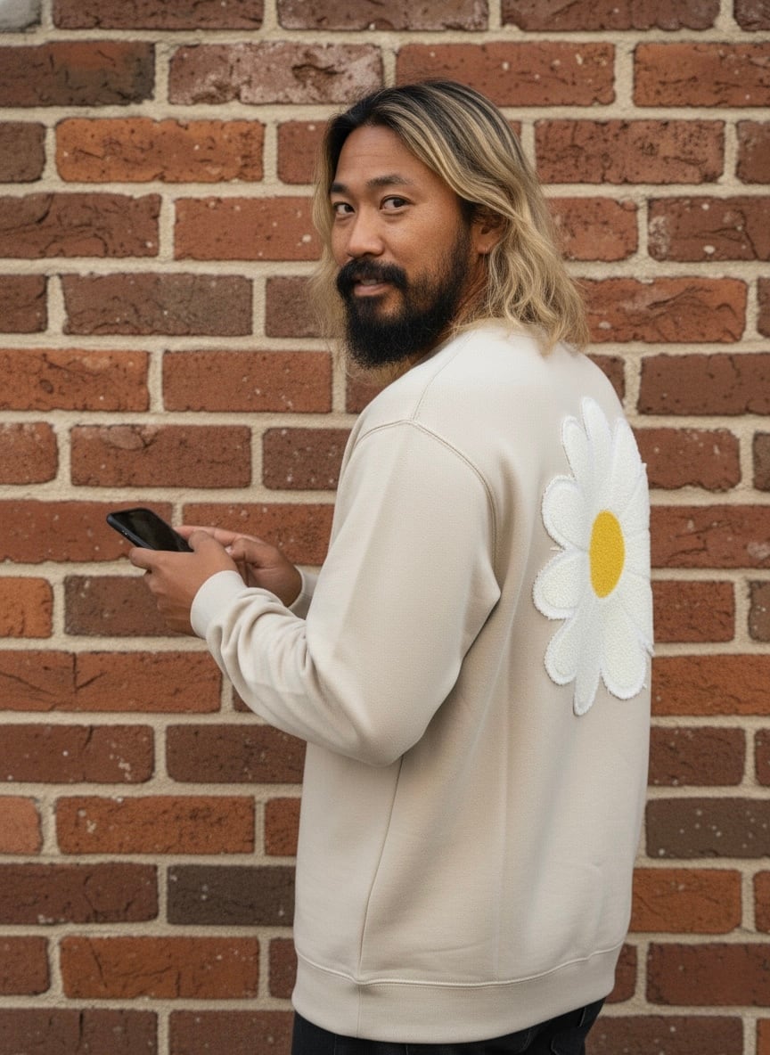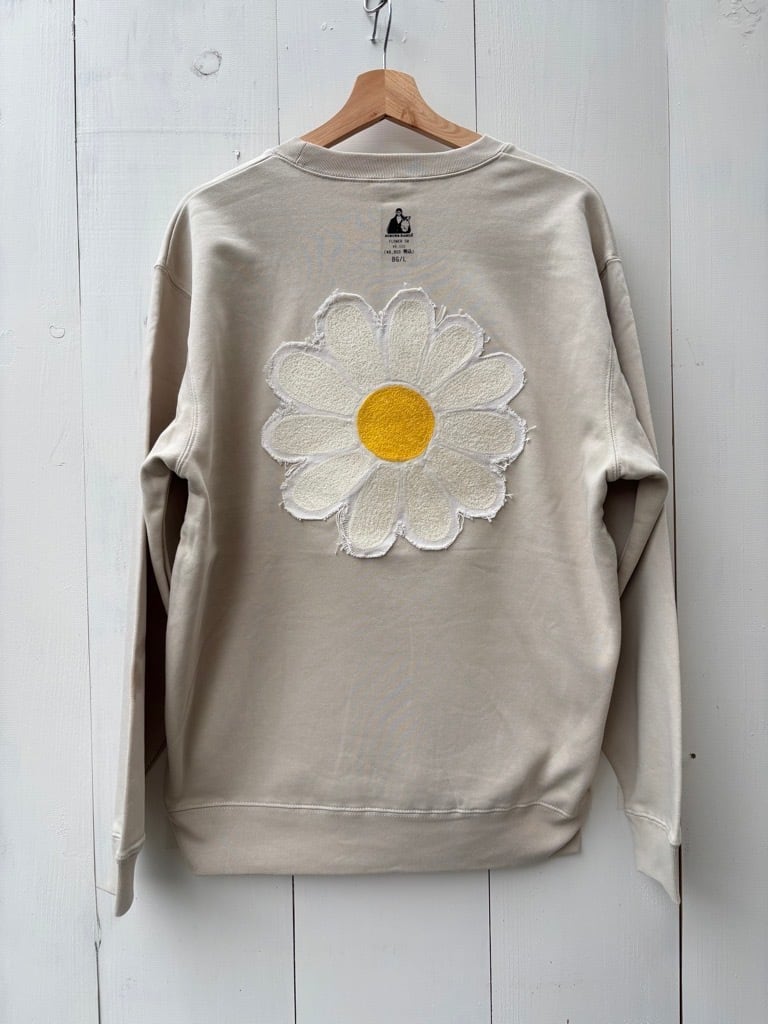 フラワー スウェット ベージュ 裏パイル 長袖 トレーナー刺繍