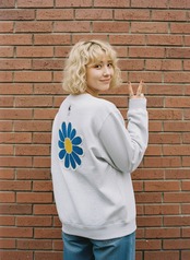 フラワー スウェット ブラック 裏パイル 長袖 トレーナー刺繍