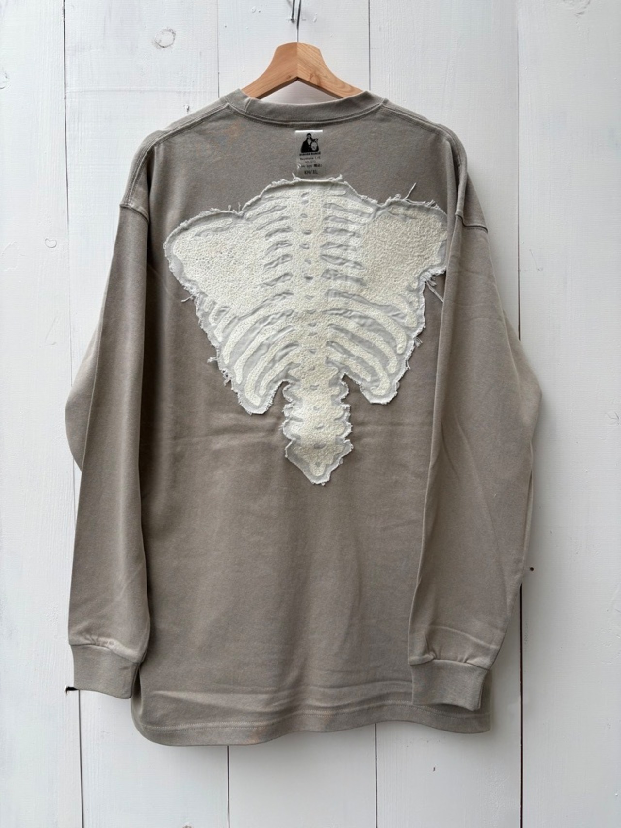 背骨 ロングスリーブ ヴィンテージナチュラル(ベージュ)マグナムウェイト ビッグシルエット 長袖 刺繍