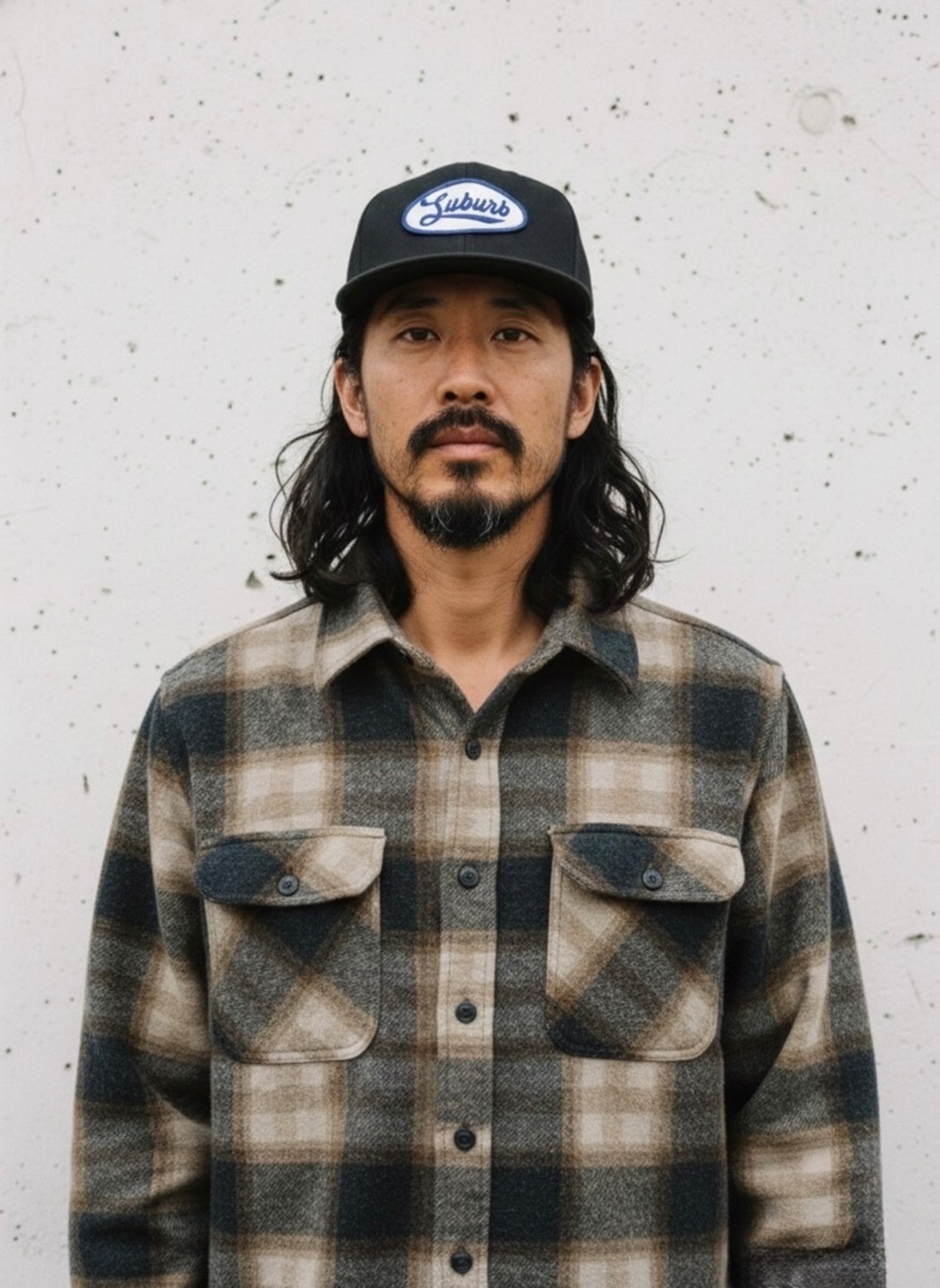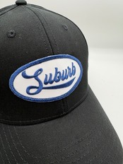 Suburb ワッペン キャップ (ボディブラック / ワッペンブルー) アメカジワッペン logoワッペン