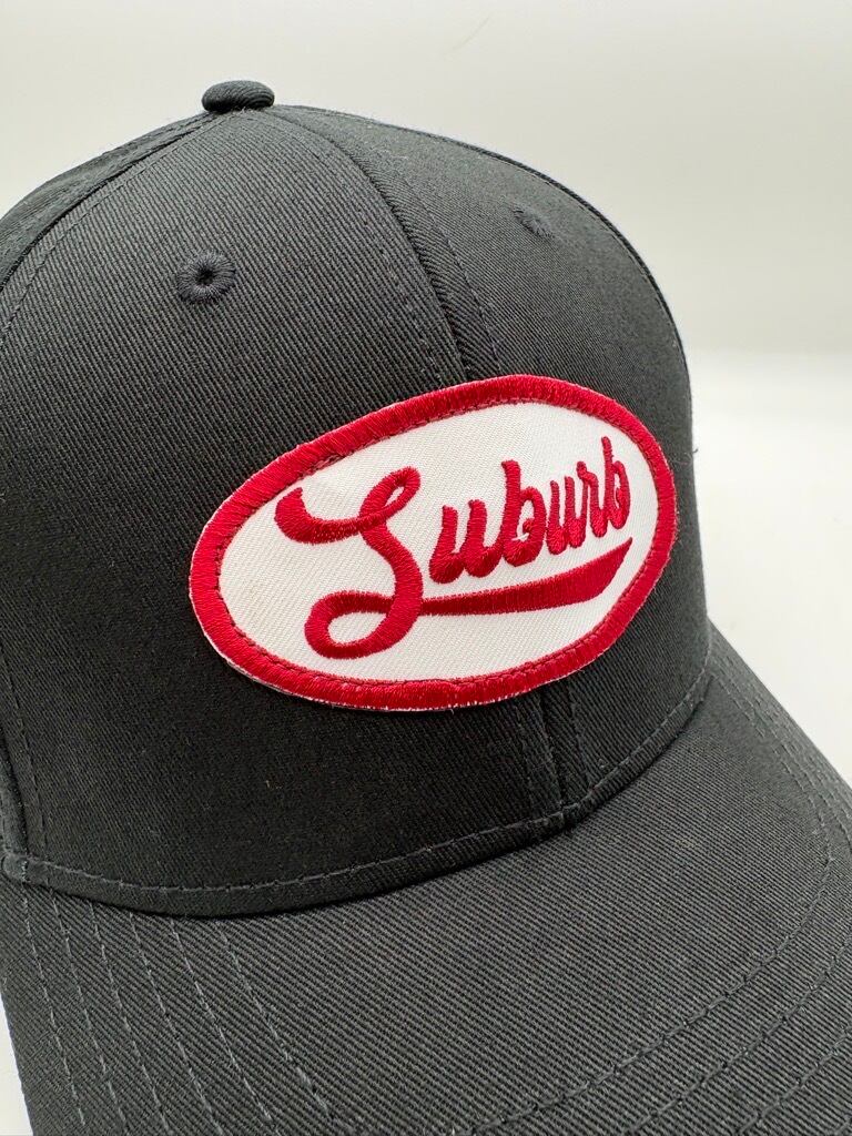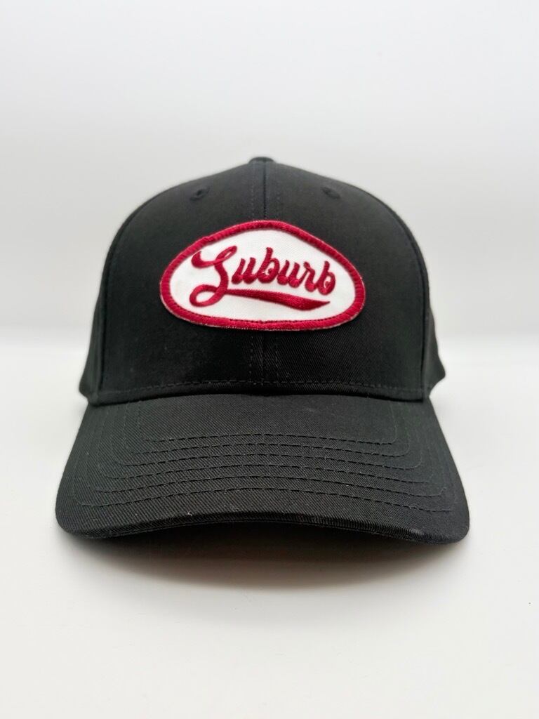 Suburb ワッペン キャップ (ボディブラック / ワッペンレッド) アメカジワッペン logoワッペン
