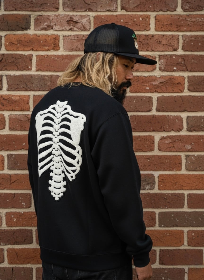 背骨 ロングスリーブ ブラック マグナムウェイト ビッグシルエット 長袖 刺繍